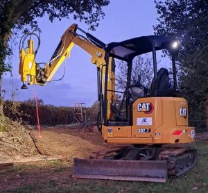 Notre pelle CAT 302.7 équipée d’un enfonce-pieux 💪