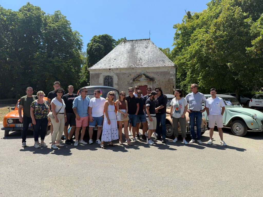 Ce vendredi, avec les Ă©quipes d’Atlantic Loc et de GM Manutention on a troquĂ© nos tĂ©lescos et nos minipelles pour des 2CV, des 4L et un Combi vintage, le temps dâune escapade dans les vignes !